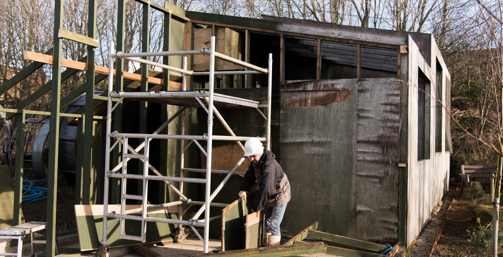 At the start of this year, it was decided that our old disused aviaries had come to the end of their useful life. Before they became any more dangerous they were carefully dismantled by the conservation project. Rotten boards and unreclaimable wood were separated from any still sound internal timbers that had been protected from the ravages of the weather.